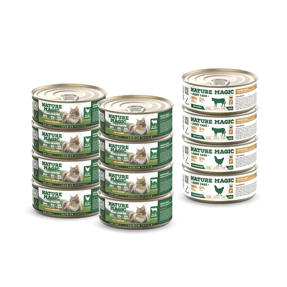 不含穀物、膠質與誘食劑,減輕腸胃負擔。全系列皆為天然無添加,純淨無負擔,讓寵物享用高品質、安心無慮的營養濕食。