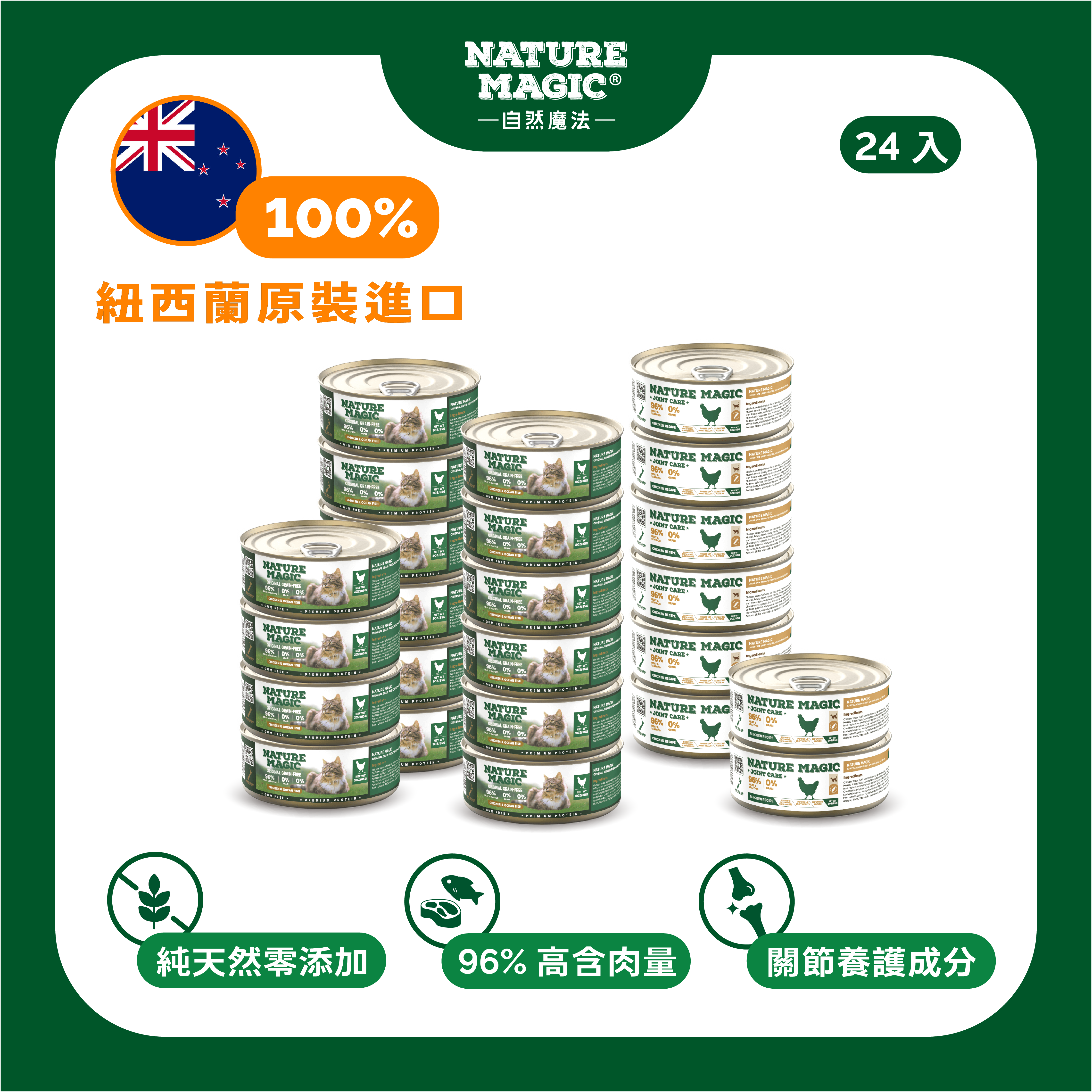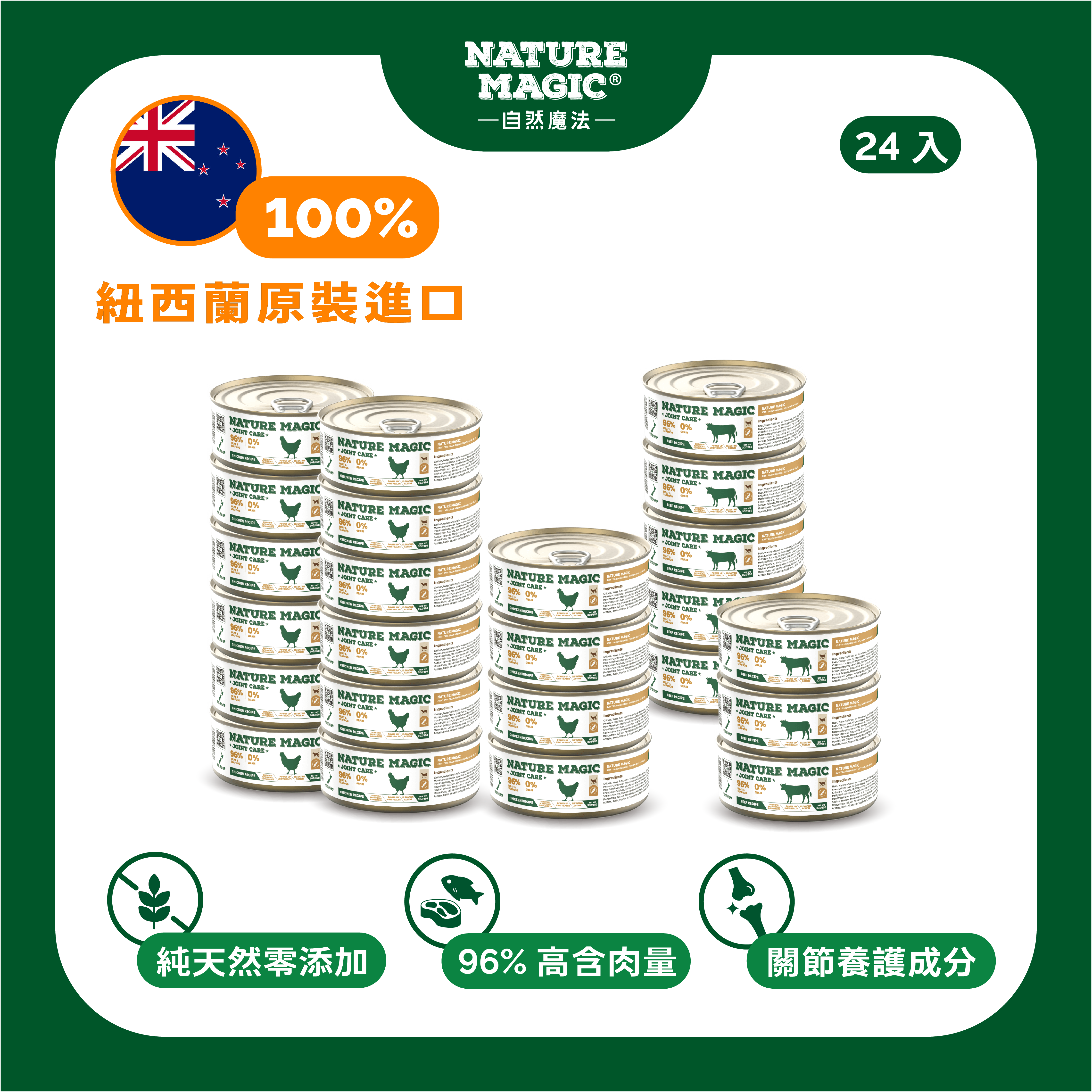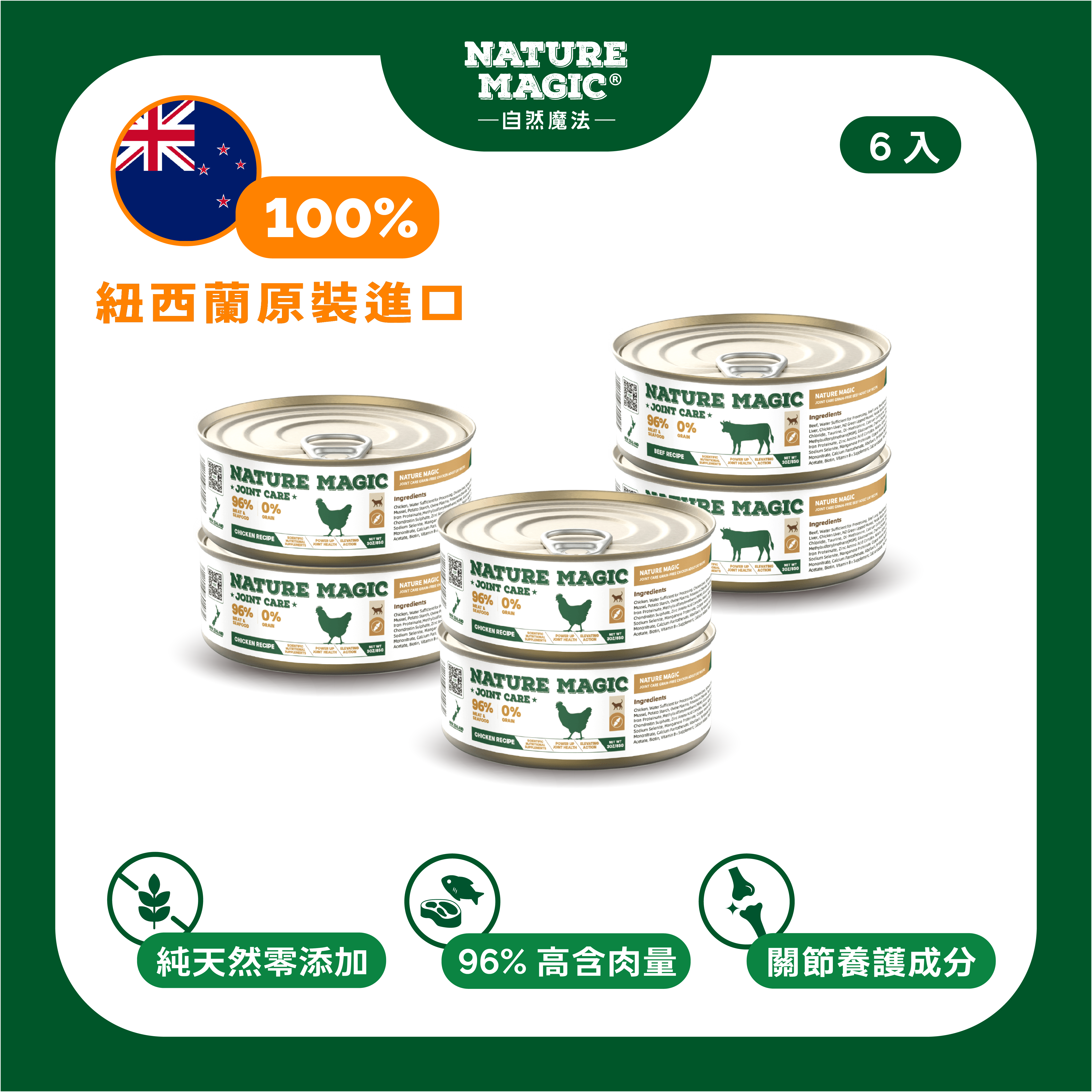 自然魔法 Nature Magic 雞肉無穀主食罐(關節養護系列),將健康保健融入日常主糧,給予每一隻毛孩穩定、溫和的關節支援與濕食補水。