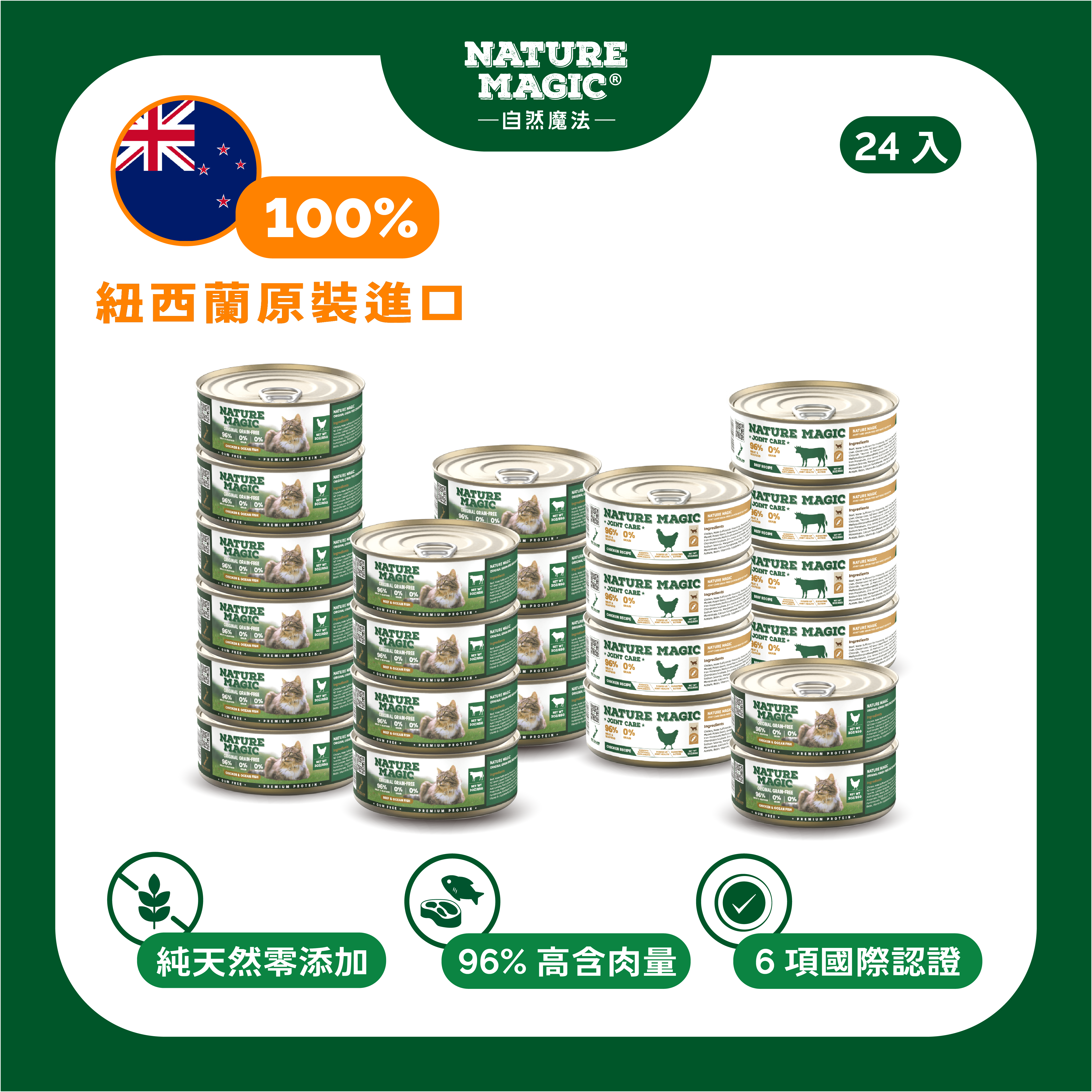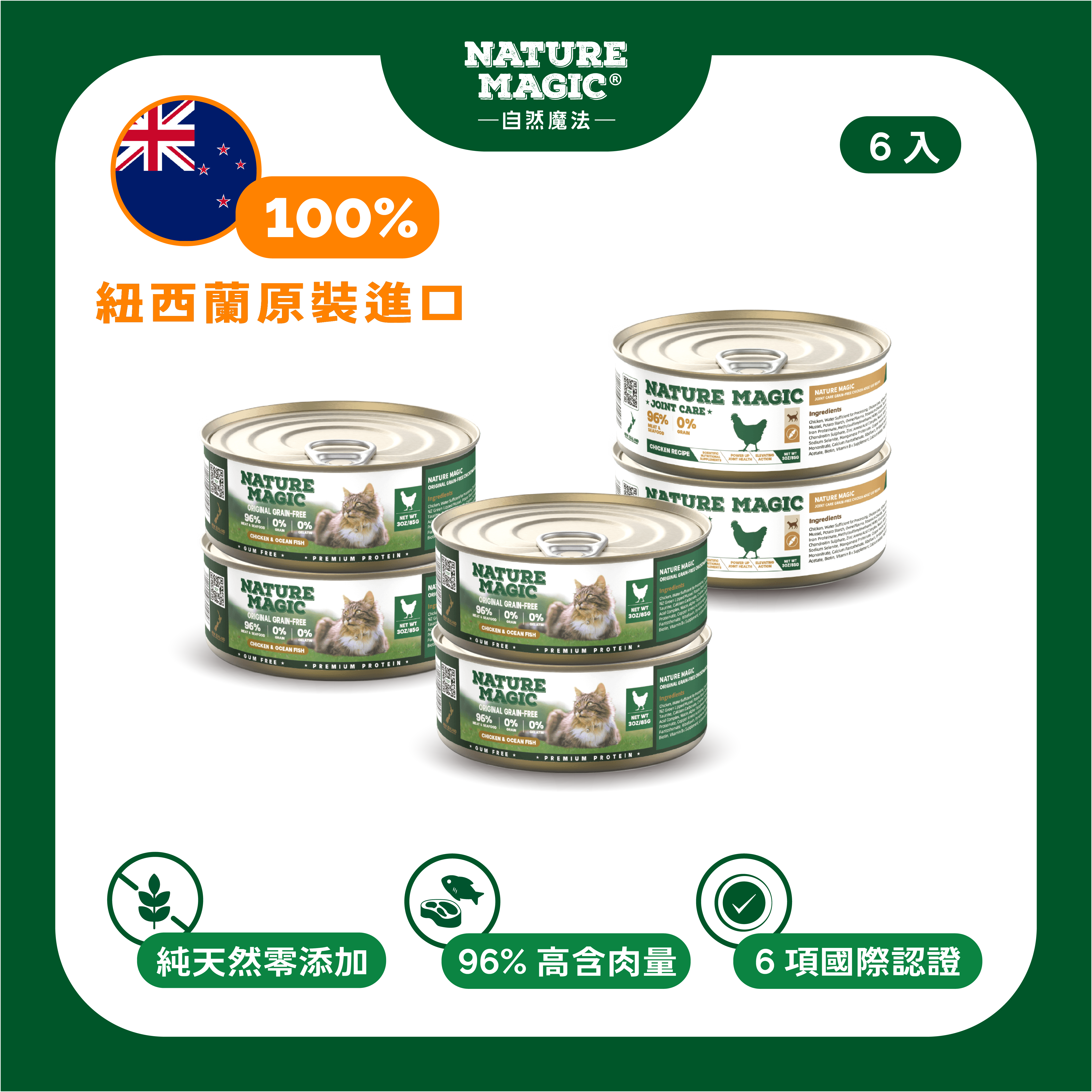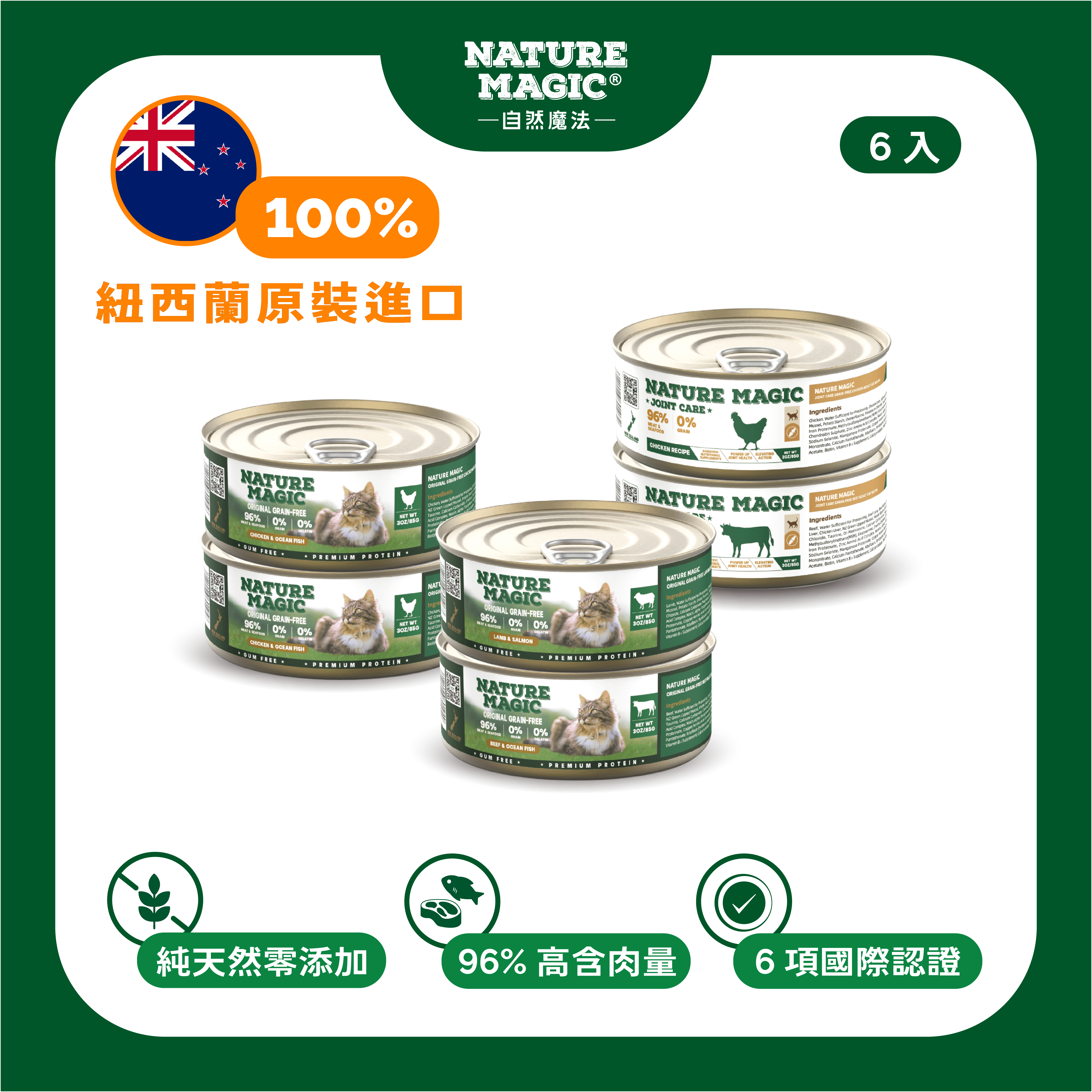 自然魔法 Nature Magic 雞肉無穀主食罐(關節養護系列),將健康保健融入日常主糧,給予每一隻毛孩穩定、溫和的關節支援與濕食補水。