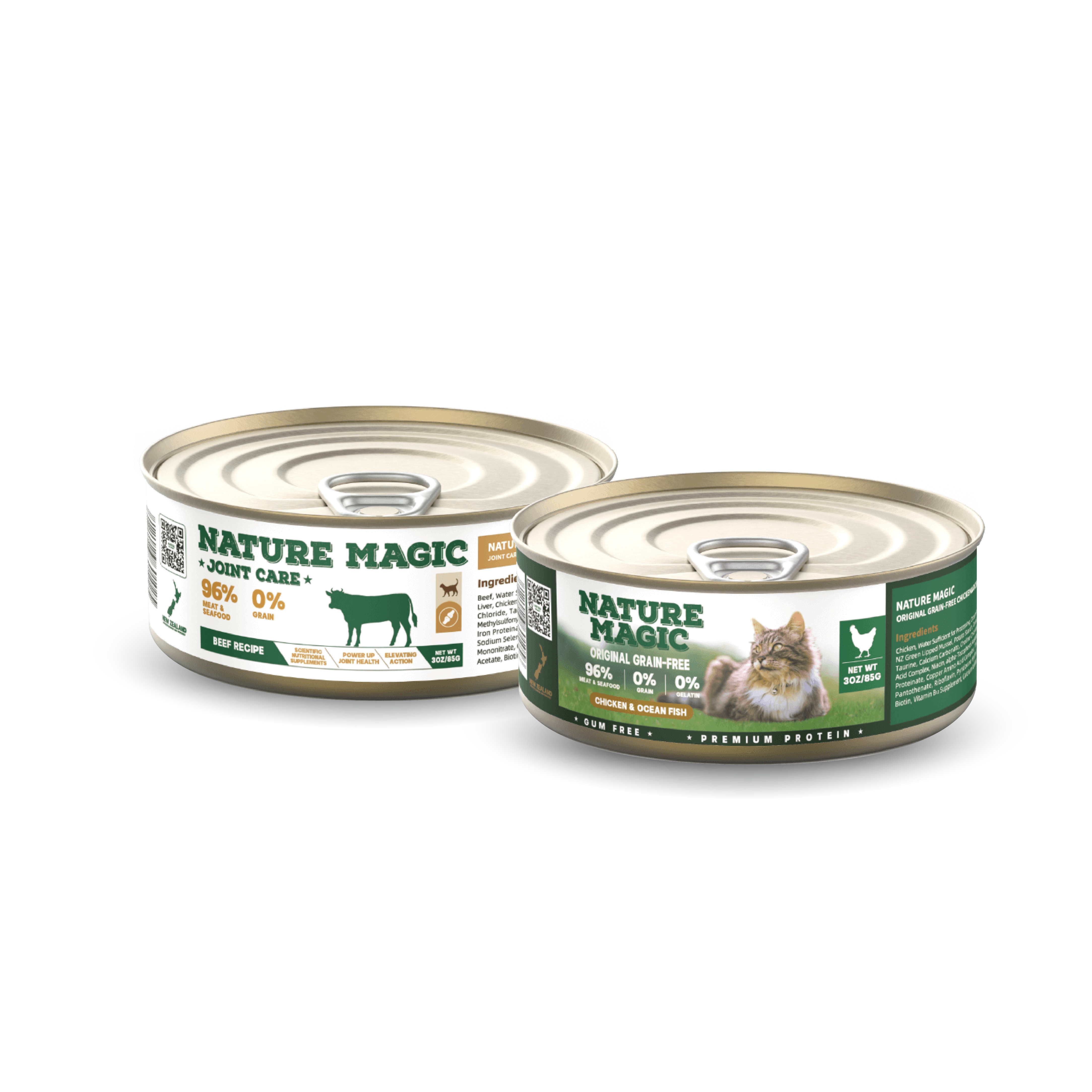 在自然魔法,我們對未來的願景深植於對自然的敬重及寵物健康的重視,並以此為指引,不斷擴展產品線,滿足養寵家庭多樣化的需求。我們的均衡飲食由專業動物營養師精心研發,強調「平衡」的理念,確保每一餐都能滋養健康與活力。透過先進的自動化技術與優化的運輸方式,我們始終保持最高品質標準。 我們的罐頭食品分為兩大系列:無穀配方與關節護理配方,與擁有超過30年經驗的知名營養專家及獸醫共同打造,以創新精神注入每一口,為寵物提供卓越的營養體驗。